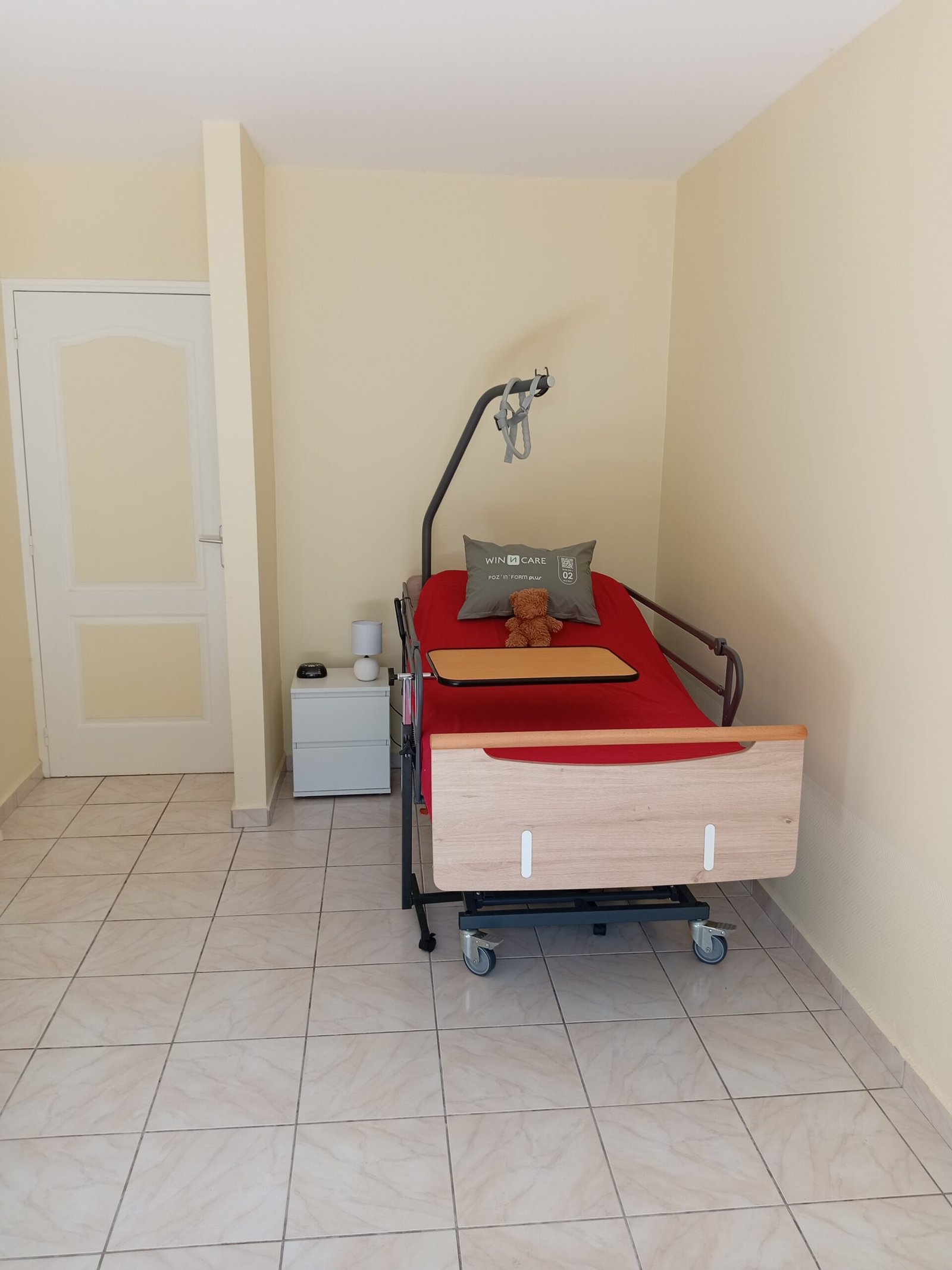 Clair et fonctionnel, cet espace offre tout le confort nécessaire pour un séjour paisible. Lit médicalisé, rangements pratiques et ambiance douce créent une atmosphère rassurante et chaleureuse, comme à la maison.